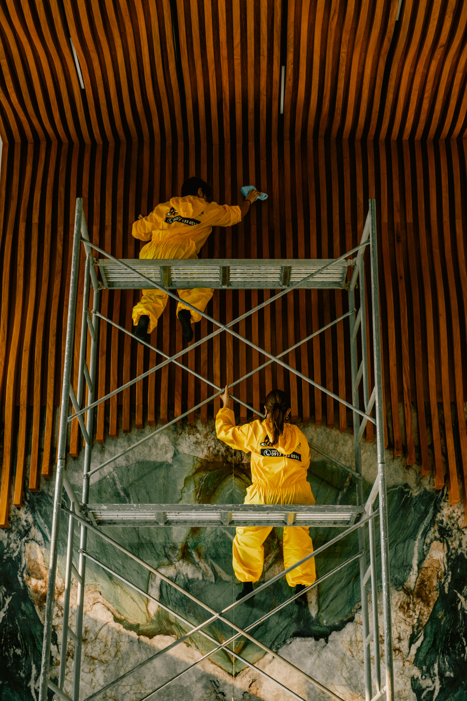 Equipped with scaffolding, our team expertly tackles high ceilings from 21 ft to 30 ft, and other challenging areas, ensuring every nook and cranny is cleaned to perfection.